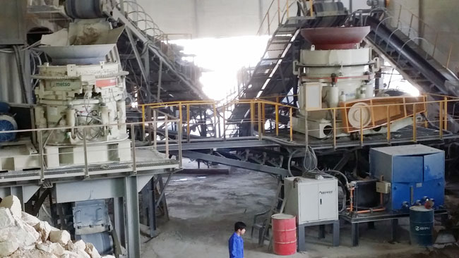 2014年6月,設備安裝到位正式投產,山美圓錐破和歐美某品牌圓錐破并駕齊驅,共同擔任生產線中的二破重任。